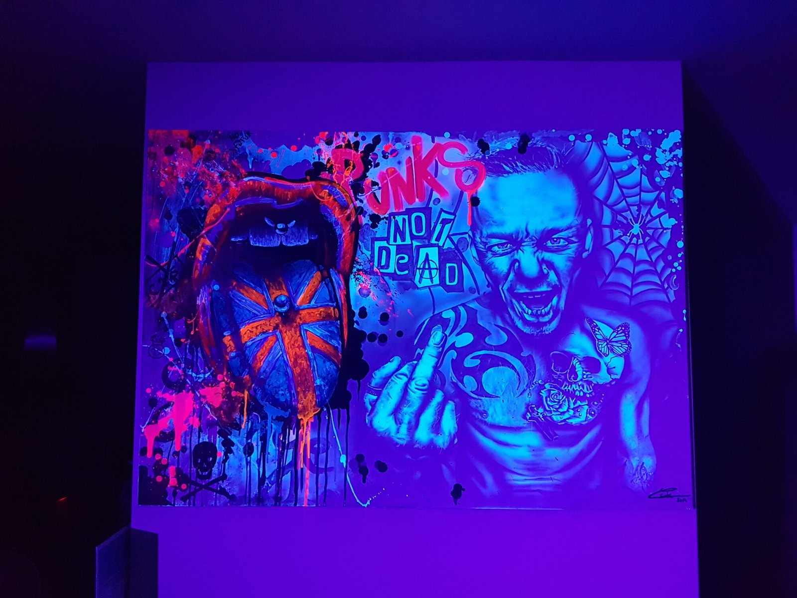 Details & Info PUNK Toile 116x81cm. Peinture sur toile, acrylique fluo et peinture invisible offrant une vue de jour et une vue de nuit. Catégorie — Les Ultraviolets